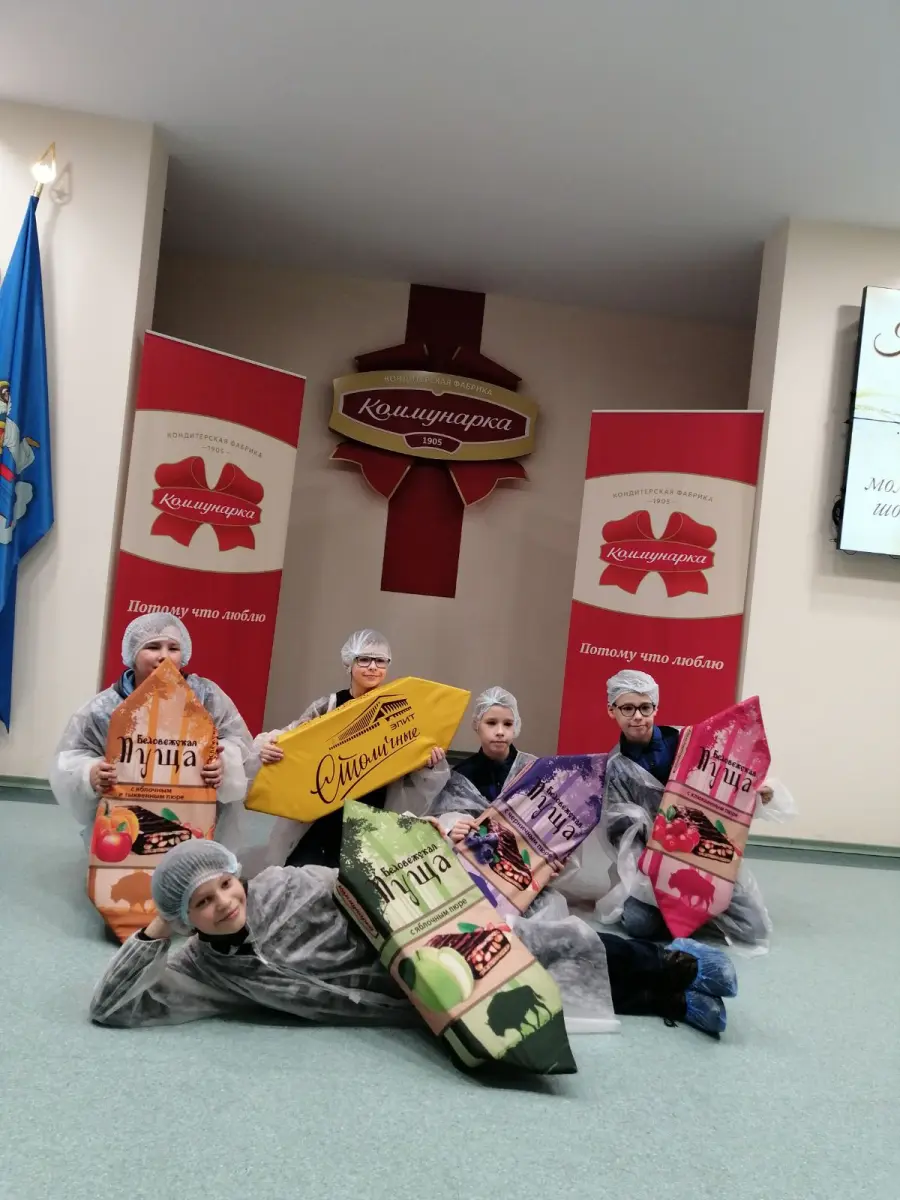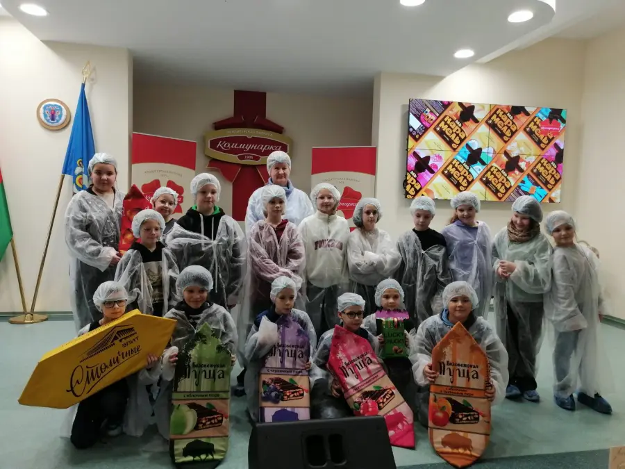 Хотели бы вы узнать, где готовят сладости для вас? Фабрика «Коммунарка» дарит такой шанс, для этого даже не придется искать счастливый золотой билет. 6 ноября 4"А" класс окунулся в волшебный мир сладостей и посетил. фабрику "Коммунарка". Экскурсия началась в актовом зале, где ребятам рассказали об истории фабрики, о том, как делается шоколад, сколько этапов он проходит, чтобы попасть в красочной обертке на полки магазинов, откуда привозят какао бобы, а также о тонкостях изготовления шоколадных изделий. «Коммунарка» подготовила отдельный фильм о том, как именно добываются какао бобы, которые после превращаются в «Любимую Алёнку» или сладкого «Сорванца». Ребятам выдали специальную одноразовую одежду и персонального гида с наушником, чтобы лучше слышать экскурсовода, ведь на самом производстве довольно шумно. Настоящих сладкоежек порадовала новость, что на протяжении всей экскурсии можно будет пробовать разные продукты от «Коммунарки», подготовленные отдельно для гостей. Дети увидели весь путь сладких изделий и даже смогли принять в нём участие. Их провели по лабиринтам производства, чтобы показать все тонкости работы: как конфеты покрывают шоколадом, как грильяж выглядит без глазури и как изготавливается шоколад из бобов. Ребята познакомились с новой необычной профессией шоколатье, которой можно в совершенстве овладеть в Белорусском государственном университете пищевых и химических технологий в Могилёве.
