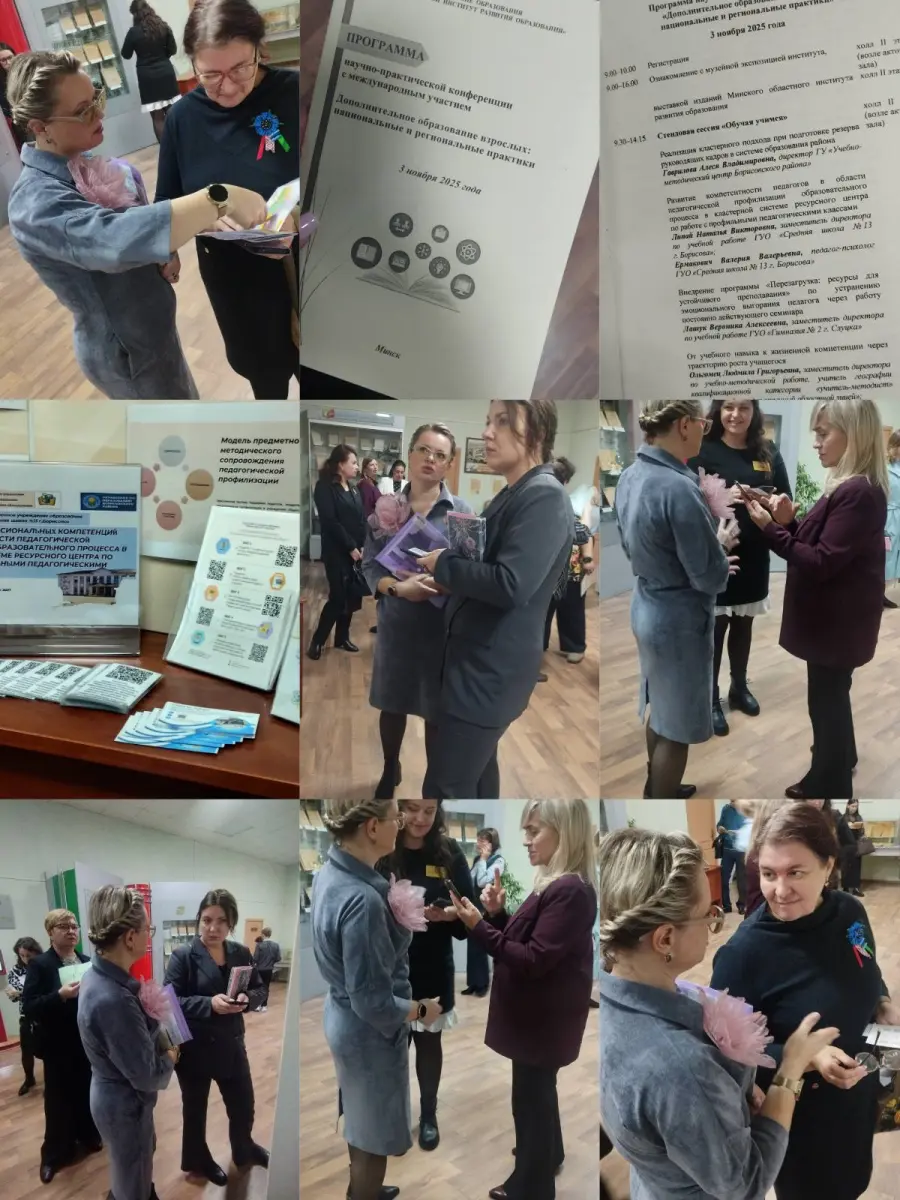 3 ноября в Минском областном институте развития состоялась научно-практическая конференция "Дополнительное образование взрослых: национальные и региональные практики", которая проходила в рамках празднования 85-летия института. В фойе учреждения прошла стендовая сессия "Обучая учимся". Педагоги Средней школы №13 г. Борисова  представили опыт проекта "Развитие компетентности педагогов в области педагогической профилизации образовательного процесса в кластерной системе ресурсного центра по работе с профильными педагогическими классами", который был высоко оценен организационным комитетом и участниками конференции.