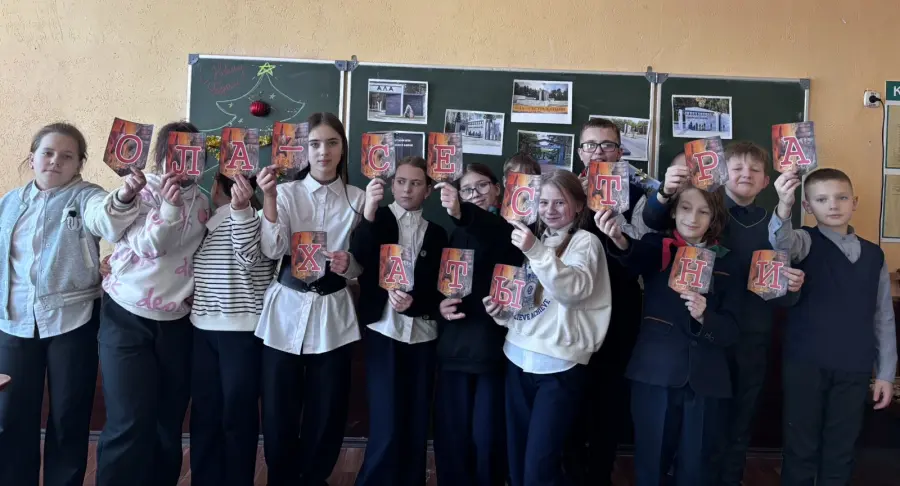 Сегодня в 5 «В» классе прошёл вдохновляющий классный час на тему «Ола — сестра Хатыни».