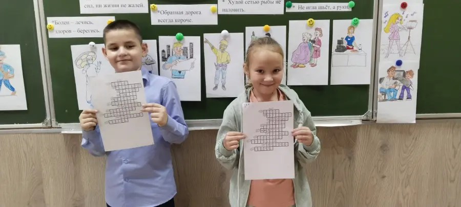 По ходу мероприятия, учащиеся отгадывали названия профессий по предметам,относящимся к ним и наоборот,составляли словарь по теме,познакомились с пословицами и соотнесли с нужной профессией,разгадывали кроссворд,соревновались,читали стихи.