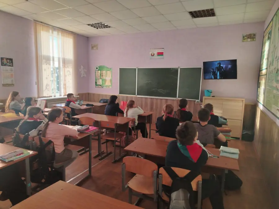 Перед началом просмотра учитель рассказал ребятам о значении цикла «Сожжённые деревни», подчеркнув важность сохранения исторической памяти. Затем учащиеся внимательно посмотрели фильм, в котором были представлены документальные кадры и свидетельства о судьбах мирных жителей, чьи деревни были уничтожены во время войны. После просмотра состоялось обсуждение. Ребята делились впечатлениями, размышляли о том, какие чувства вызвали увиденные события, и почему так важно помнить о трагедии сожжённых деревень.