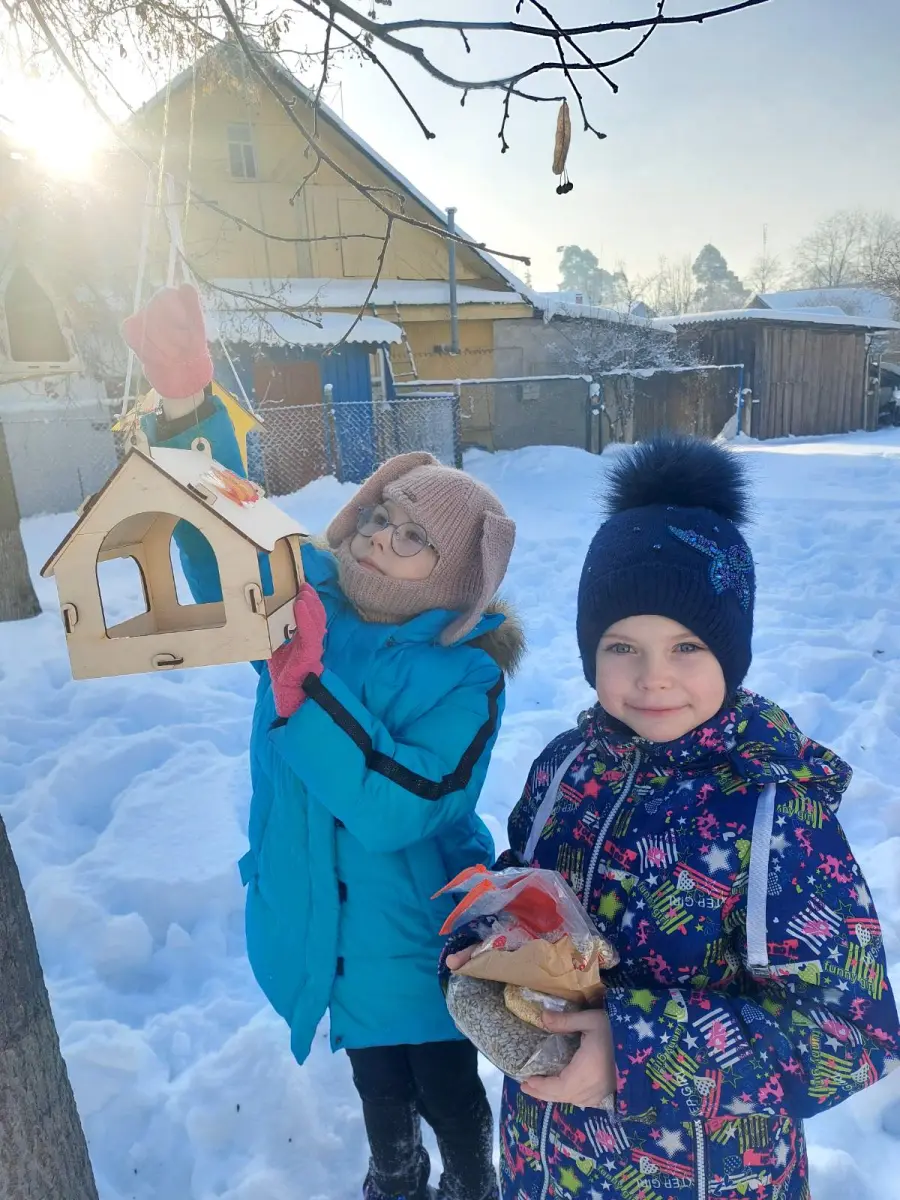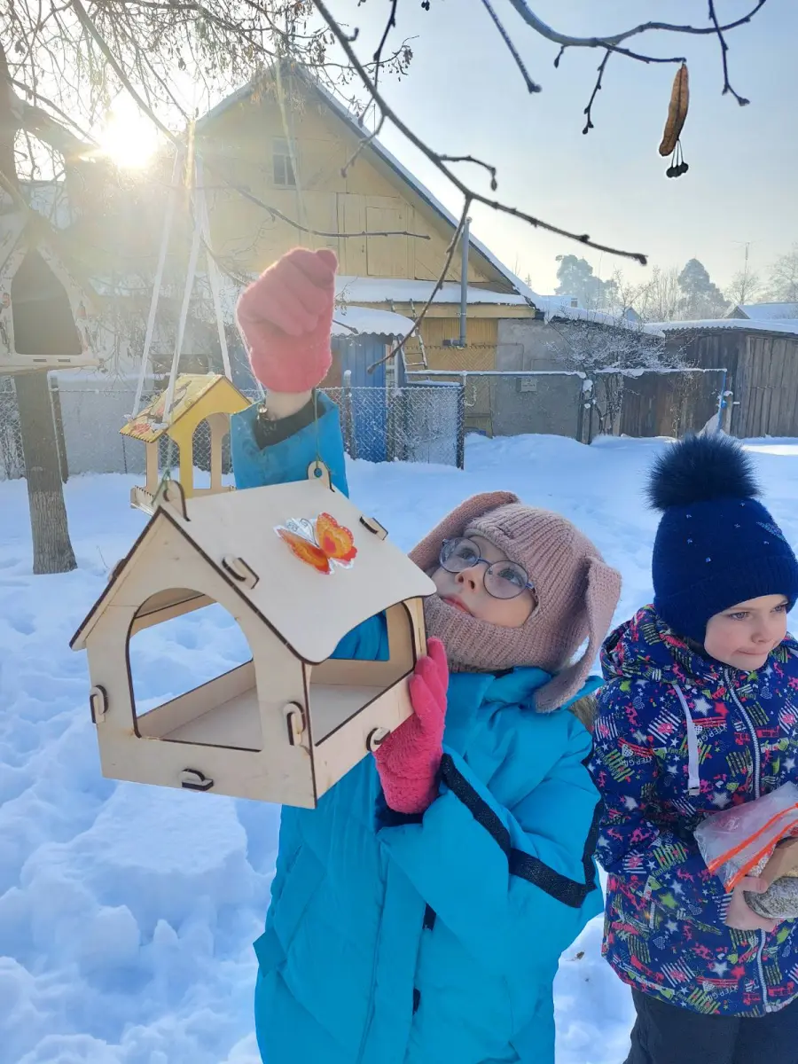 1 "Б" продолжает участие в акции "Зимующим птицам - нашу заботу". Сегодня мы развесили ещё 3 кормушки, пополнили кормом. Ждём наших пернатых друзей. Прилетайте! Корм припасён надолго!
