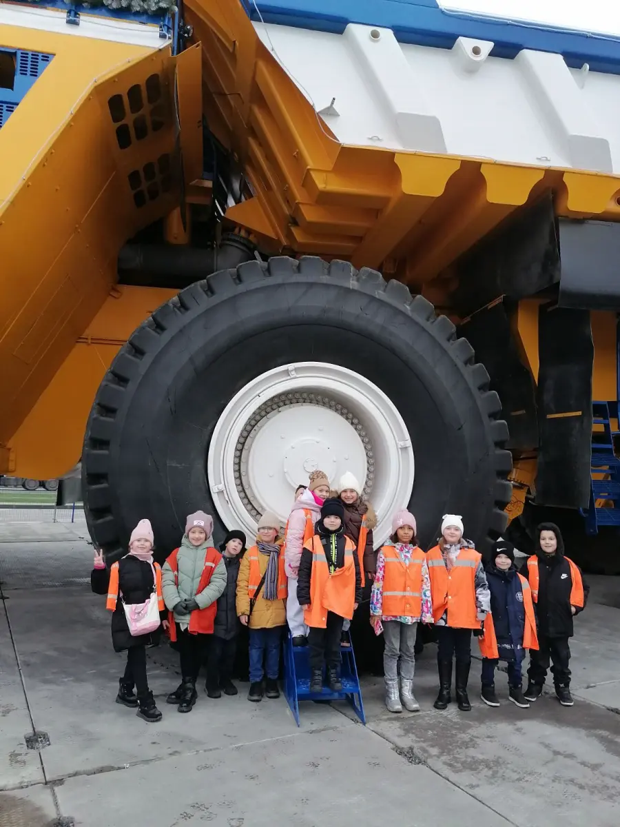 Кроме того, учащиеся побывали на выставочной площадке сверхтяжёлых машин, смогли сделать впечатляющие фотографии рядом с гигантскими самосвалами и даже подняться к водительской кабине.