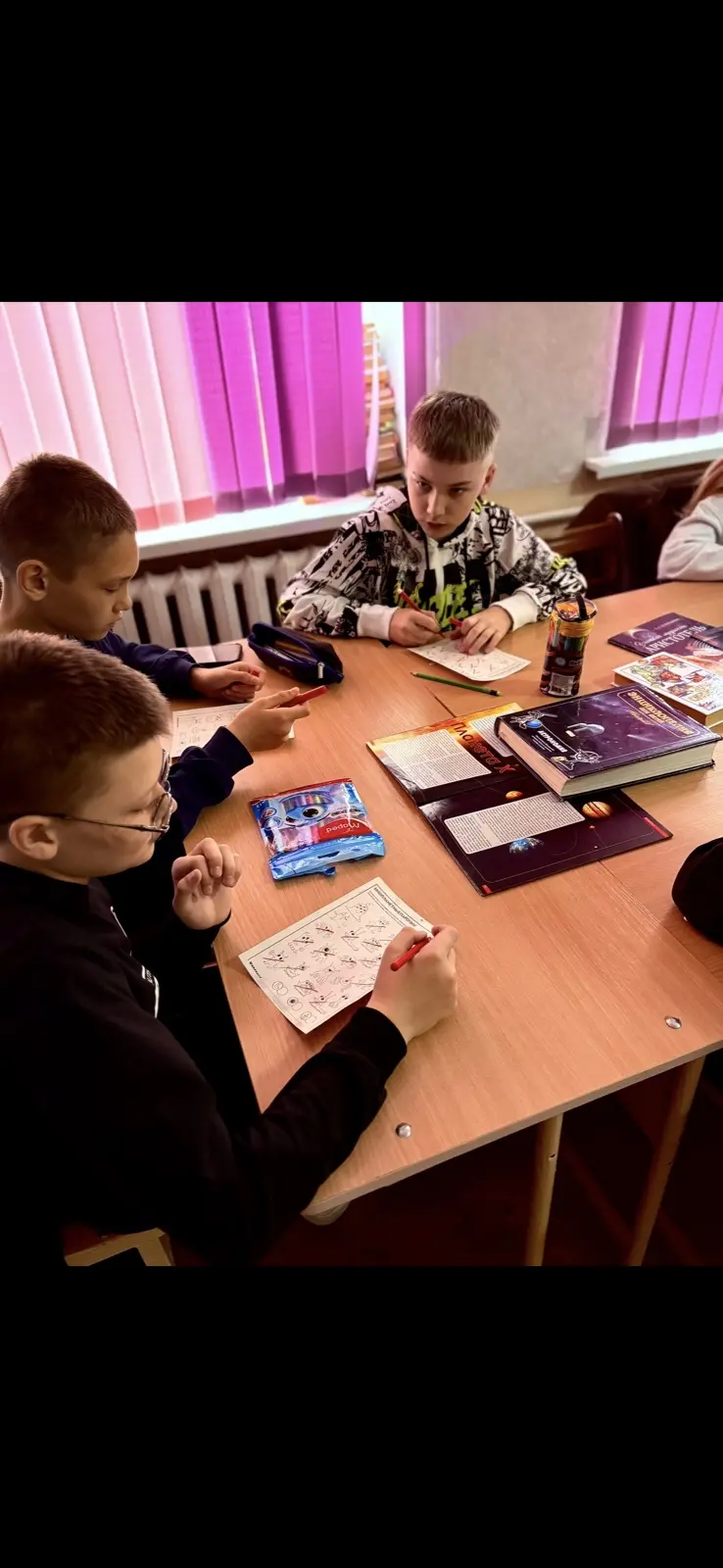 11 апреля 2026 в преддверии дня космонавтики библиотекарь Золотова А. В. провела тематическую беседу – игру «Космос и его герои». В начале мероприятия ребята прослушали информацию о первом полёте человека в космос, узнали много интересного о жизни Ю. А. Гагарина, историю создания космических кораблей. Далее участники мероприятия отгадывали загадки, отвечали на вопросы астрономической викторины, участвовали в подвижных конкурсах. К мероприятию была также подготовлена книжная выставка.